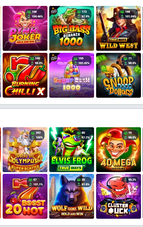 - Pragmatic Play: Gates of Olympus, Sweet Bonanza, Big Bass Bonanza
