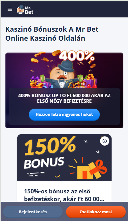 A Mr Bet új játékosok számára több befizetésre felosztott üdvözlőcsomagot kínál, emellett cashback ajánlat is elérhető. Ez a struktúra azért lehet előnyös a magyar játékosok számára, mert nem csupán az első feltöltést jutalmazza, hanem a következő befizetéseket is.