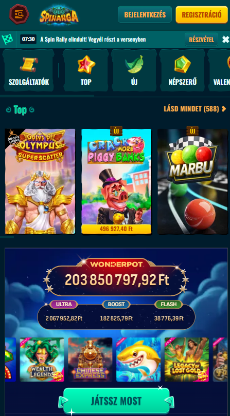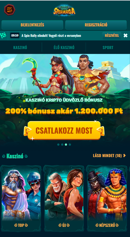 A Spinanga egy nemzetközi online kaszinó, amely kifejezetten figyel a magyar játékosok igényeire is. A weboldal teljes egészében magyar nyelven is elérhető, a bónuszok forintban vannak feltüntetve, és a regisztráció gyors, egyszerű. Már az első belépéskor választhatsz üdvözlő bónuszt: klasszikus kaszinójátékokhoz vagy sportfogadáshoz.